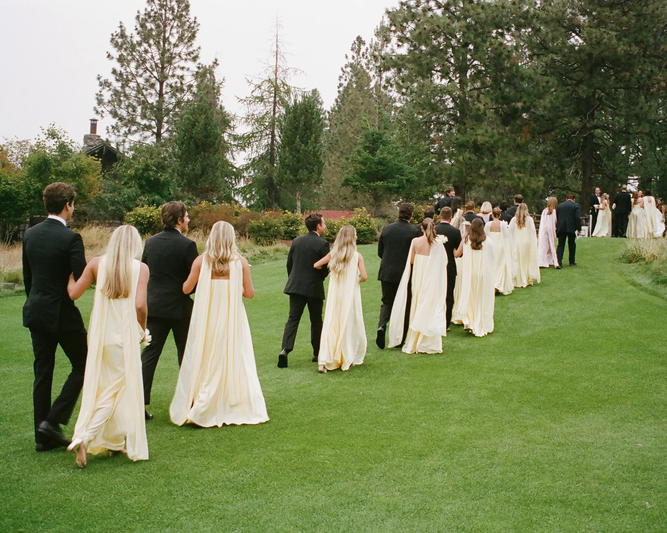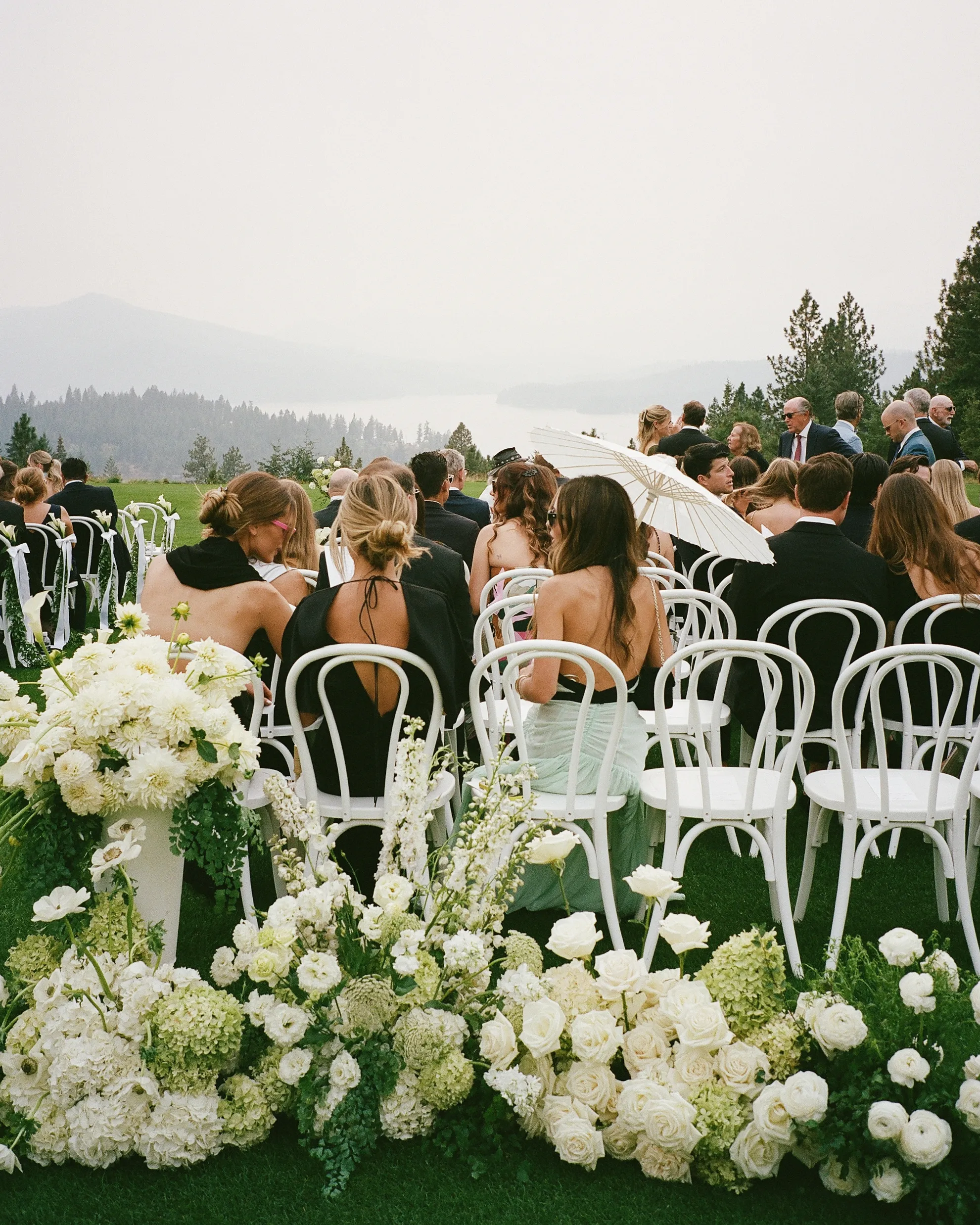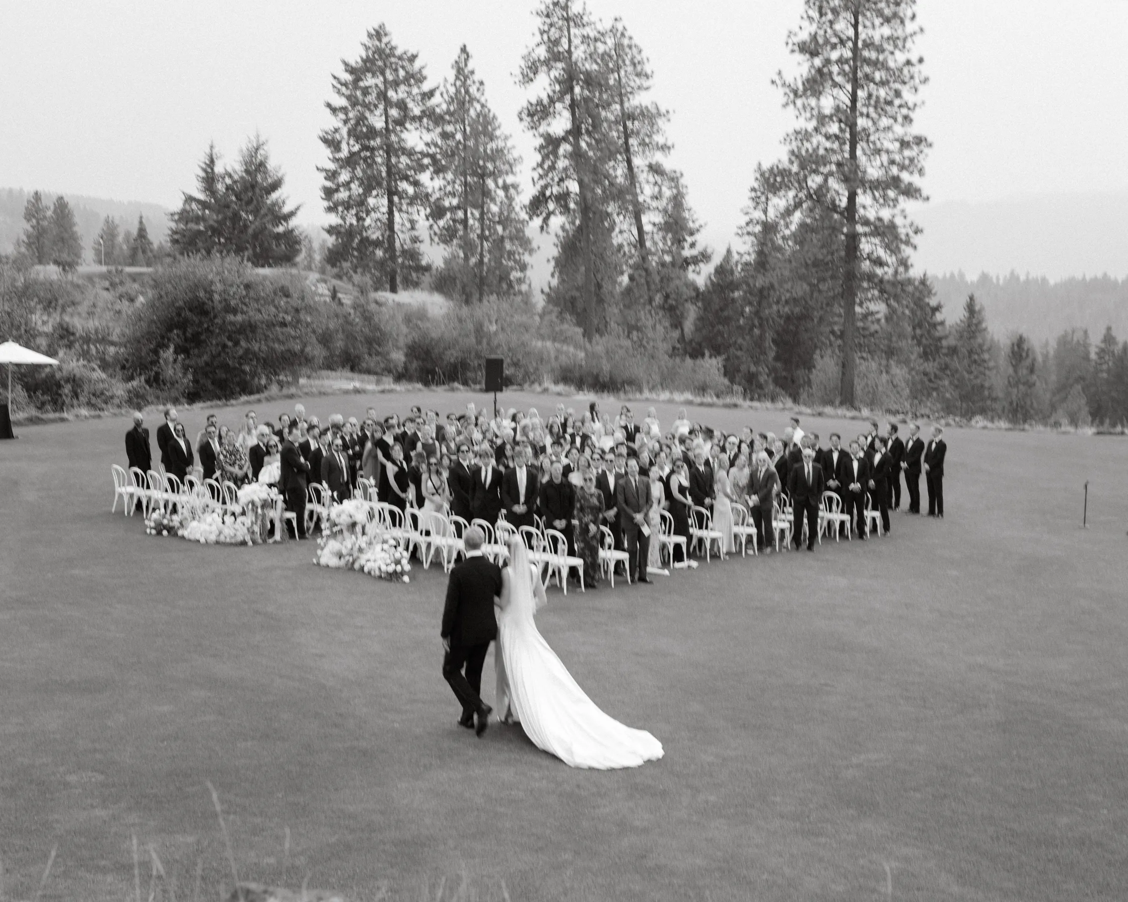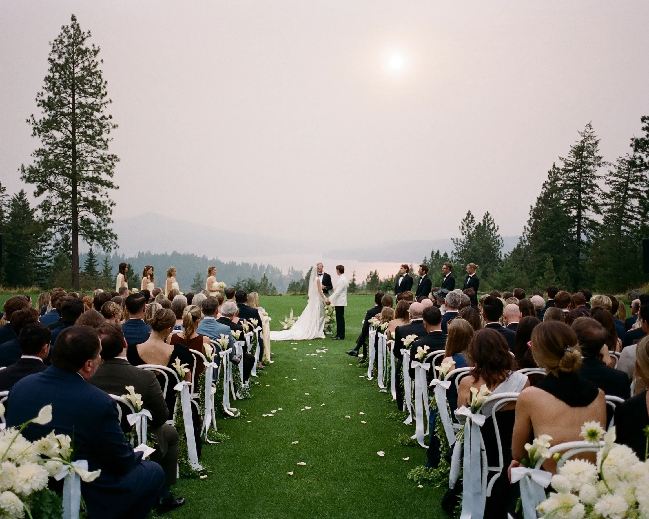 Церемонию провёл отец невесты на берегу озера Кёр дэ Лейн, с кристальной водой и горами Скалистого хребта на заднем плане.
