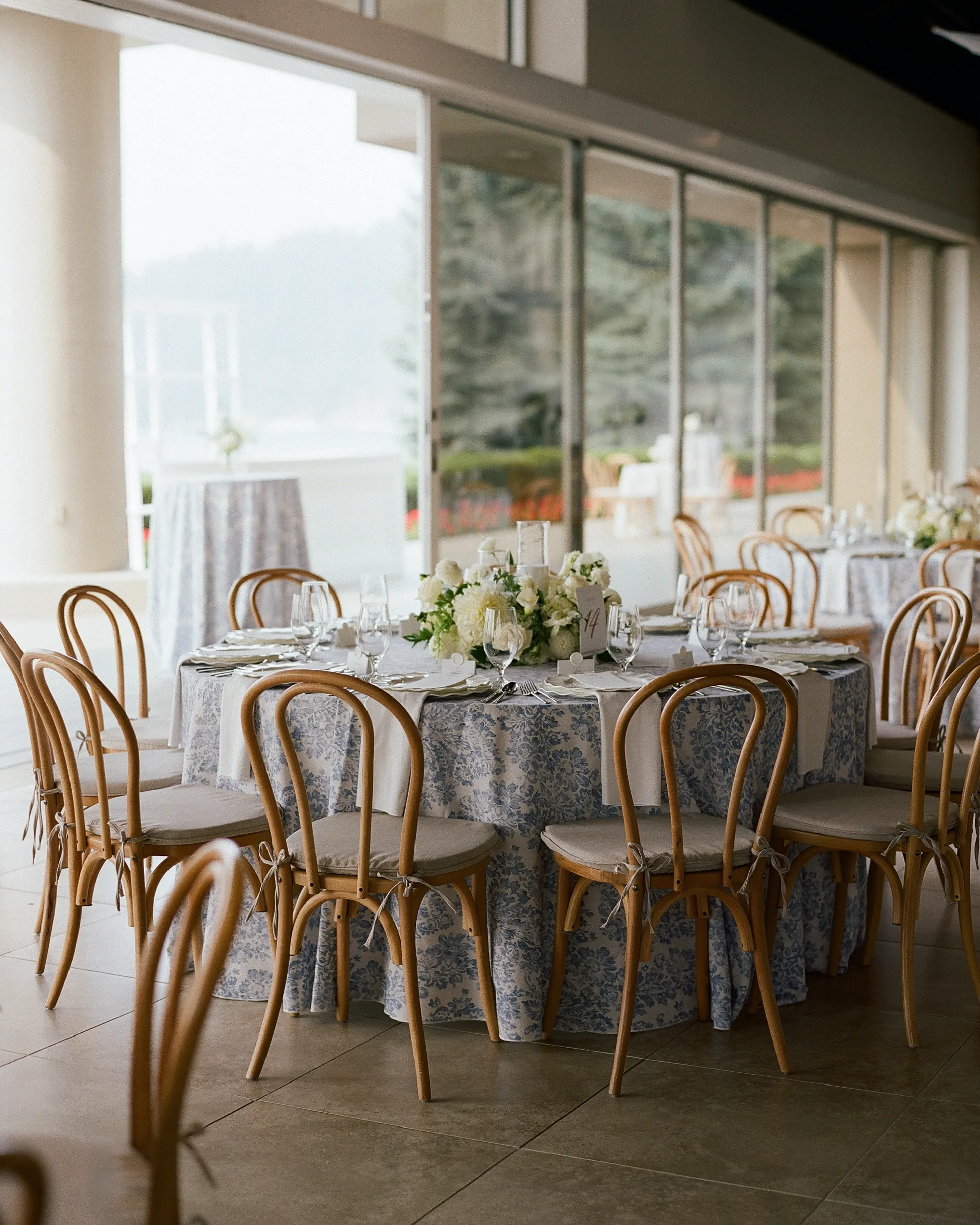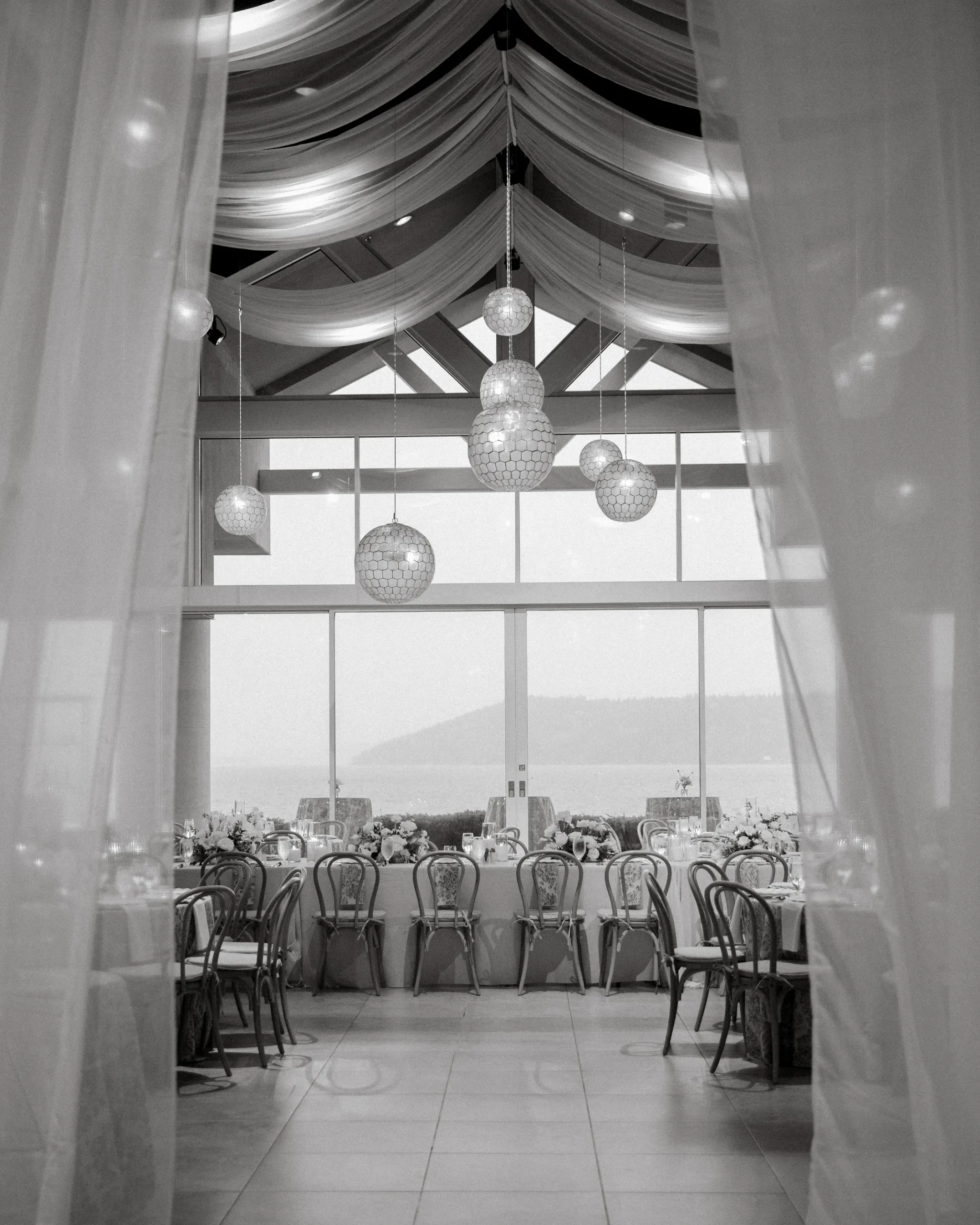 Невеста поделилась, что они сознательно минимизировали декор: простые белые стулья, композиции из белых роз и гортензий.
