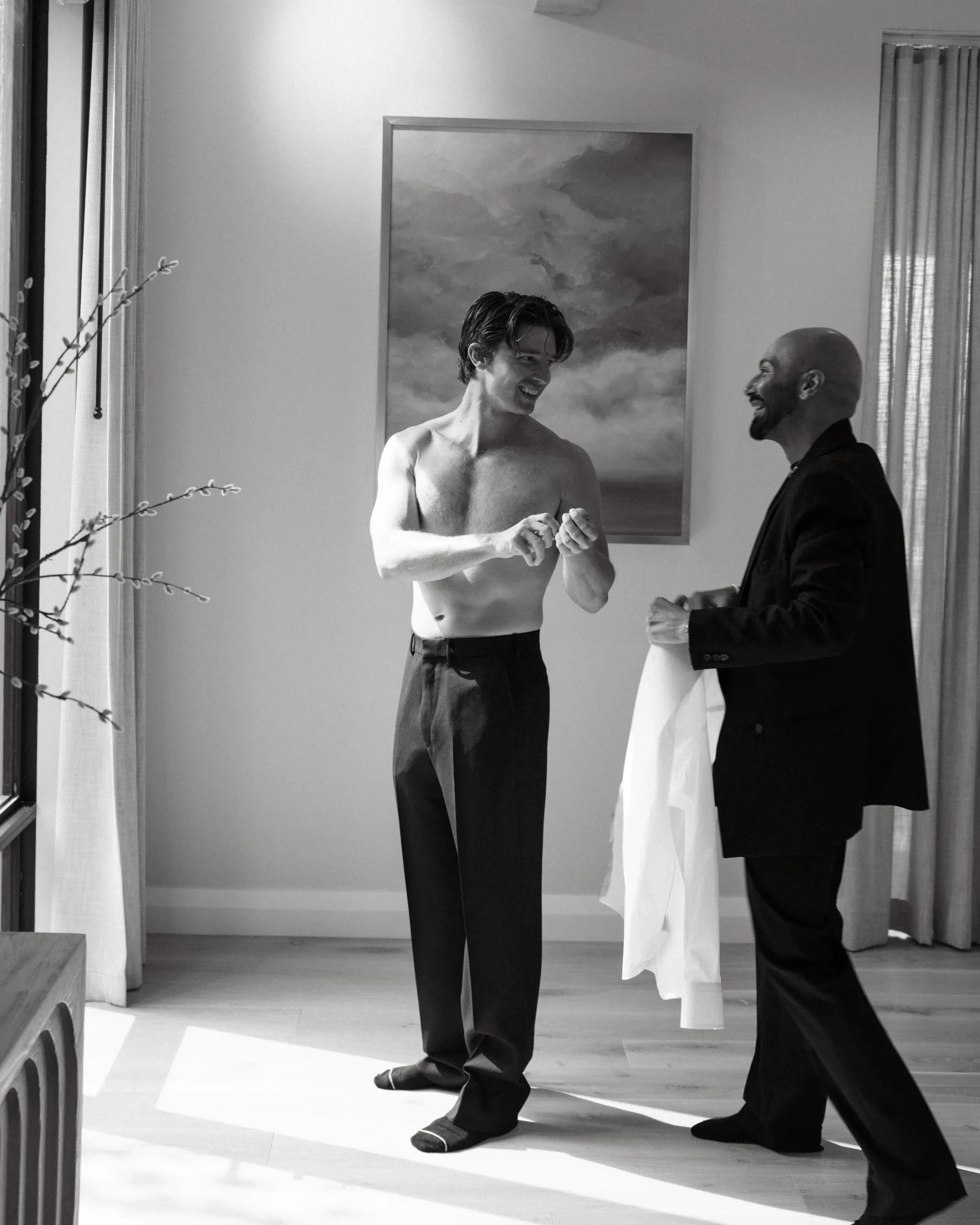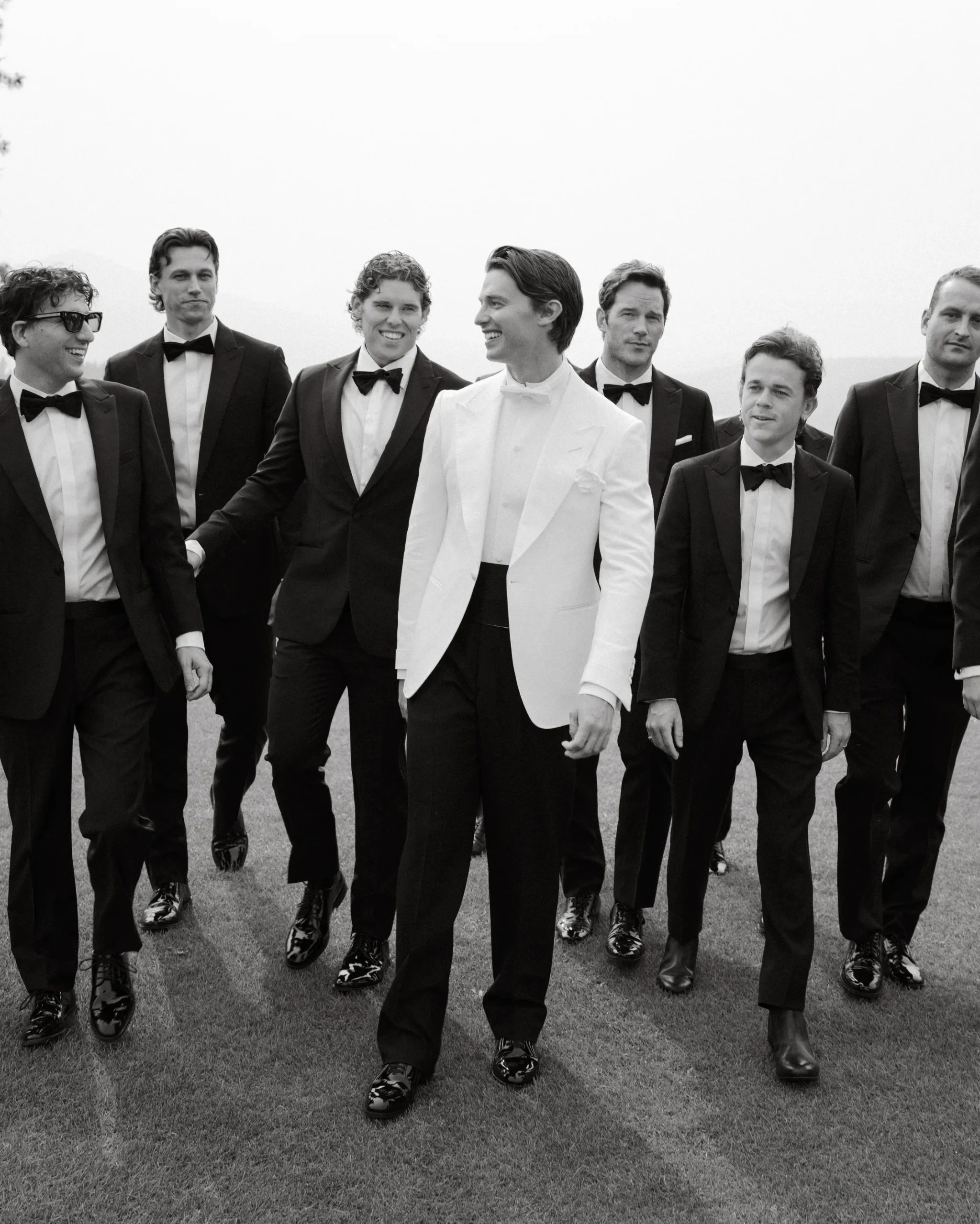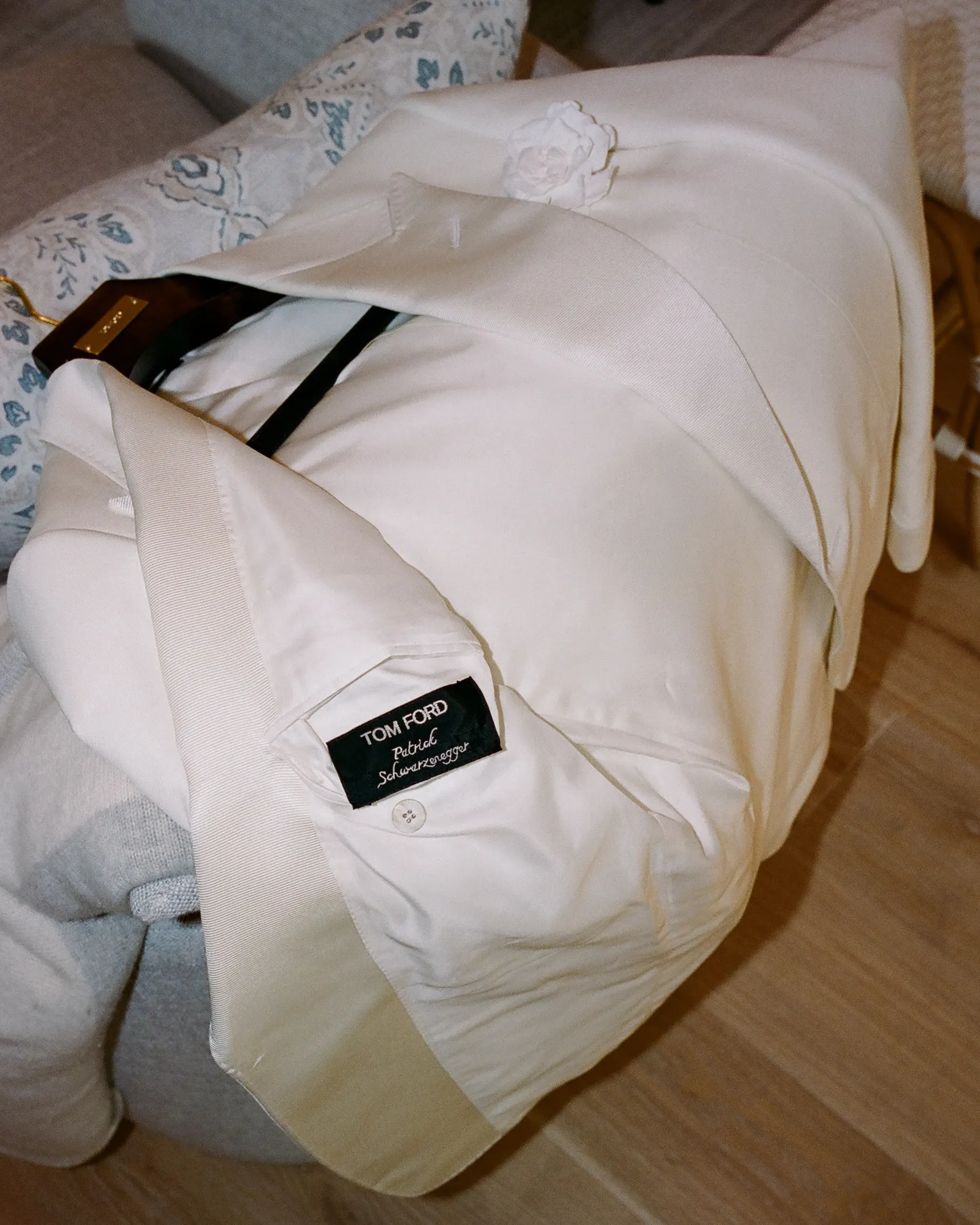 Патрик ждал невесту под цветочной аркой в кастомном смокинге Haider Ackermann от Tom Ford.