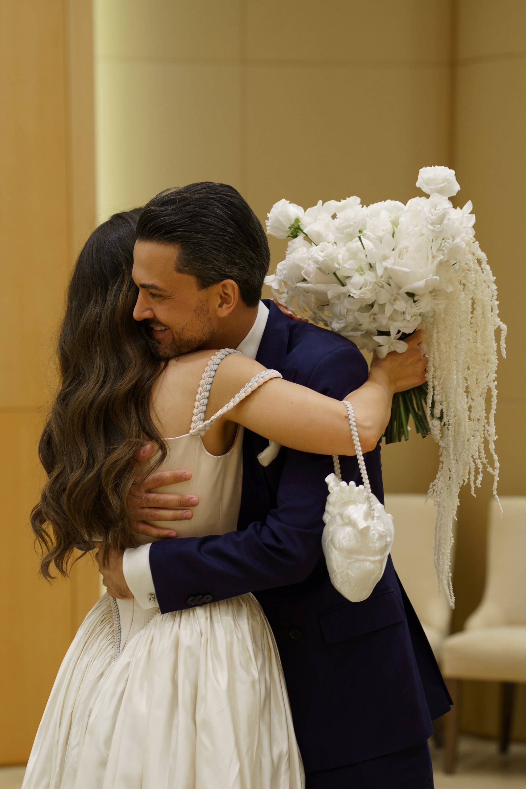 EDEM Couture создали идеальный образ невесты. Дизайнеры собрали все тренды воедино: тут и драпировка, и классический минимализм, и конечно же, модный в этом сезоне жемчуг.