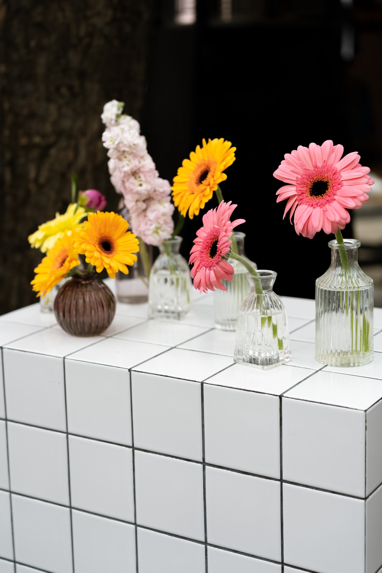 Классной фишкой нашего праздника стало то, что мы просили гостей вместо цветов приносить бутылочку своего любимого напитка, подписывать её маркером и оставлять в отдельной зоне под названием «семейный бар».