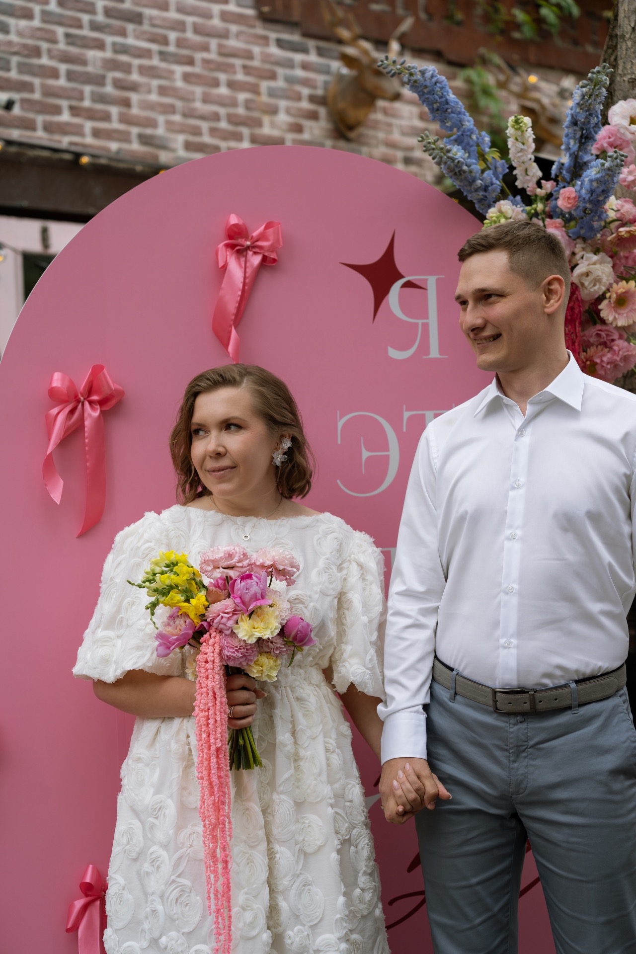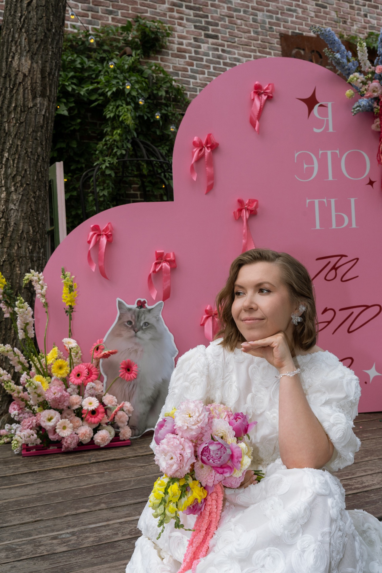 Затем я начала смотреть свадебные дропы у маленьких брендов, так как они привлекали своим минимализмом, удобством и уникальностью. Так я увидела то самое платье у локального бренда Permanentno из Костромы. Я влюбилась в его фактуру, банты на спине и крой. Мне сшили его по моим меркам, и оно село идеально без единой примерки.