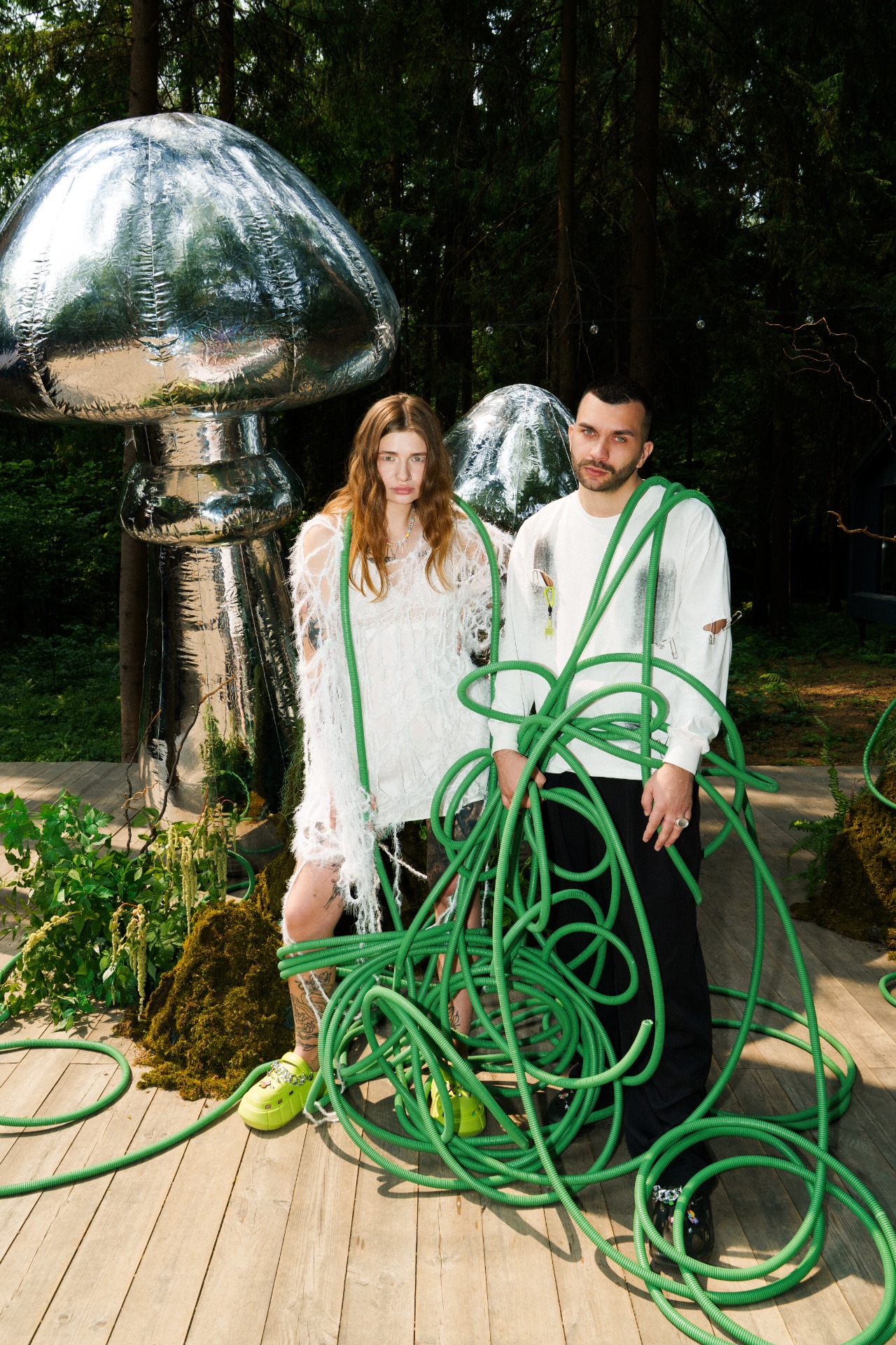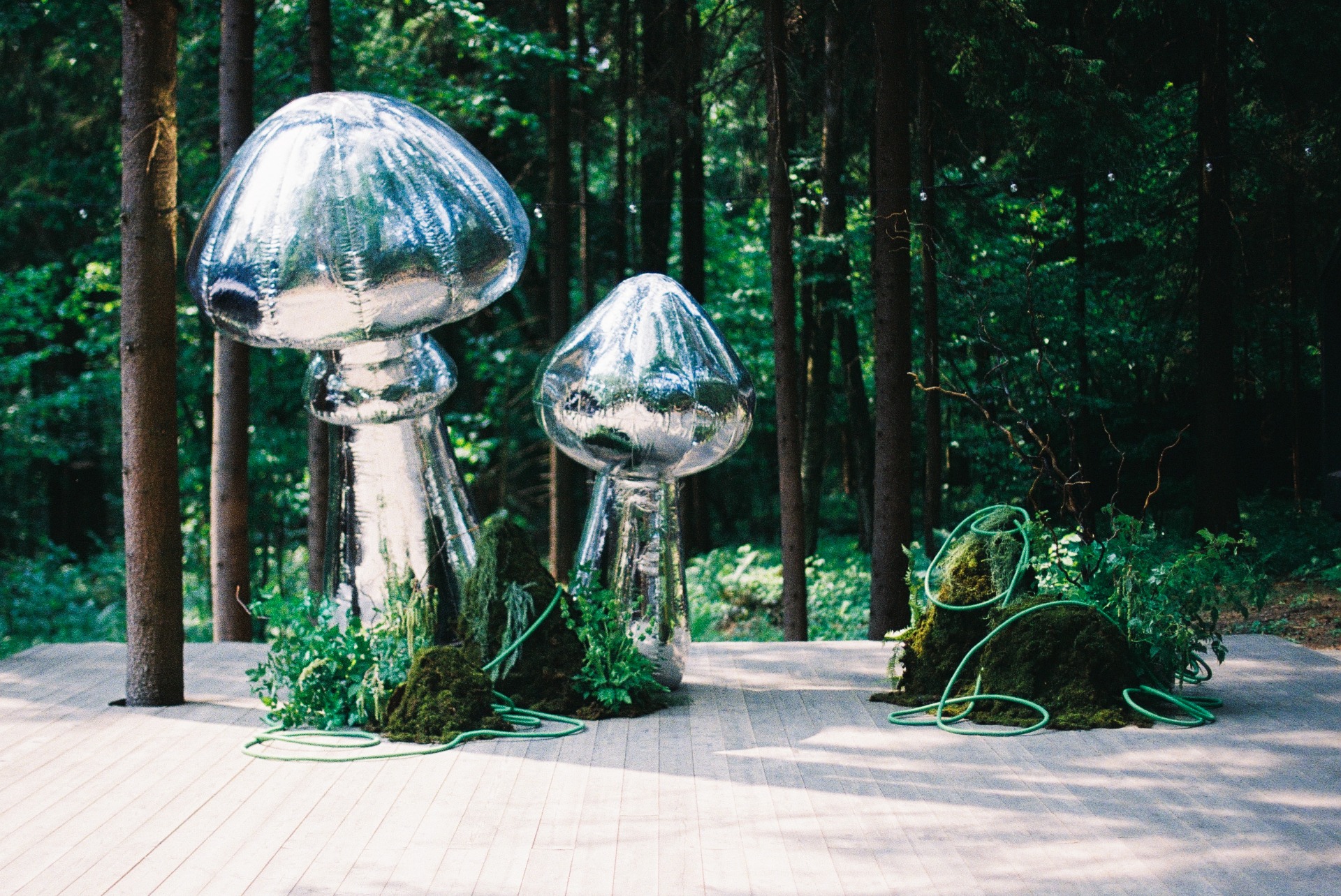 С площадкой определились быстро, выбрали ту, которая действительно отражала нас и наше ощущение жизни. Лес подсказал и палитру, и концепцию: природа, мох, зелень, никаких цветов.