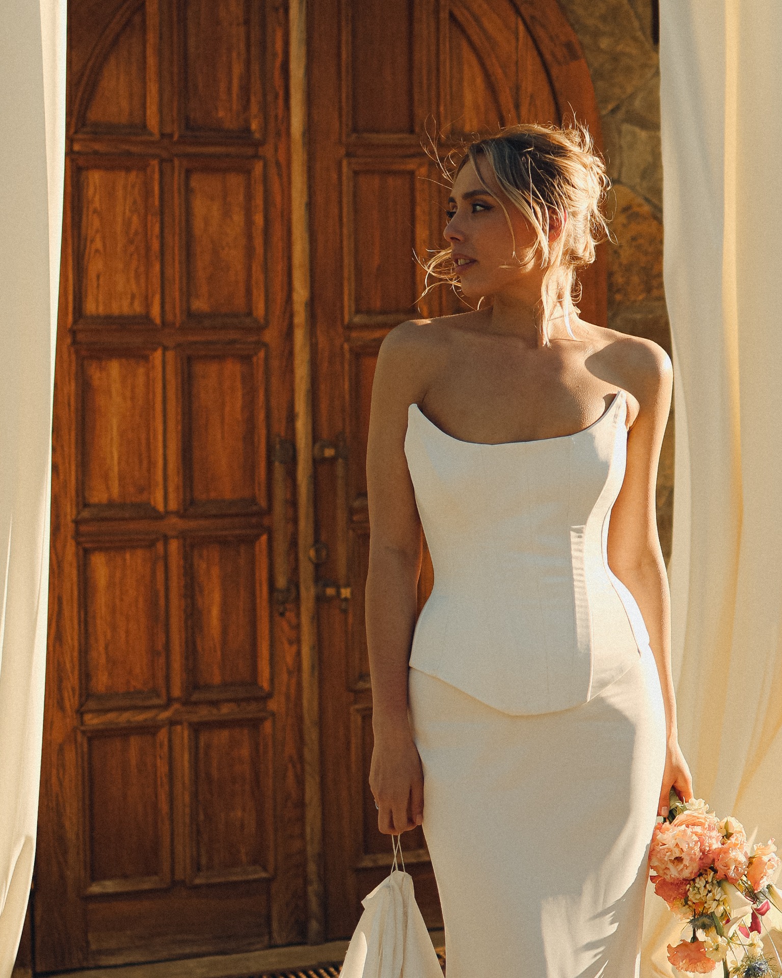 Я хотела спокойный и лаконичный образ: утончённый, с лёгким лоском, но без излишнего пафоса. Сначала я искала наряд в салоне, но чем яснее в моей голове вырисовывалась картинка того, что я хочу, тем больше я понимала, что её нужно воплощать в пошиве на заказ.