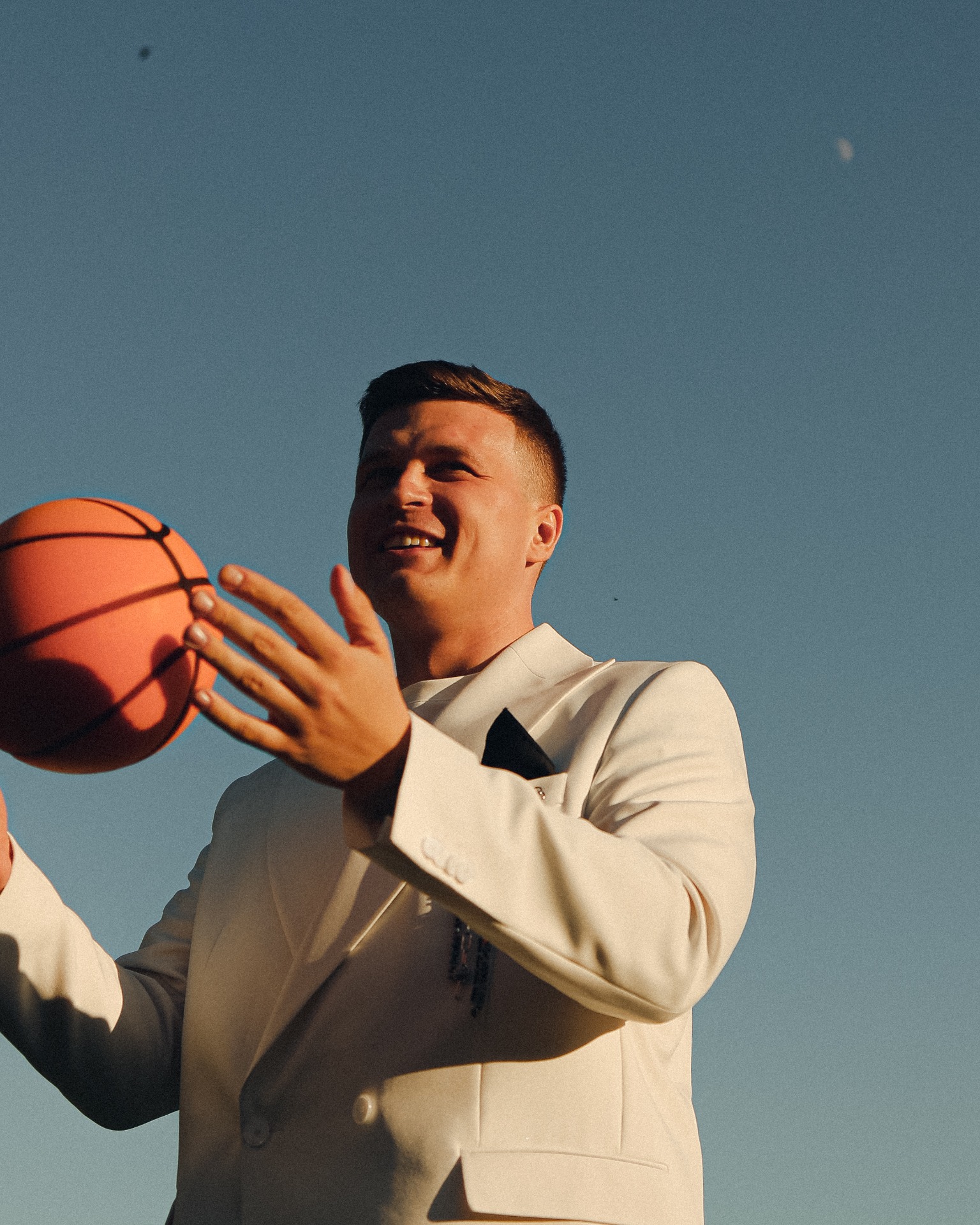 В качестве других активностей были дженга, фотомемы, которые нужно было повторить, и даже баскетбольное кольцо, ведь Вася обожает играть в баскетбол. Даже подвязку он «бросал» не рукой, а мячом!