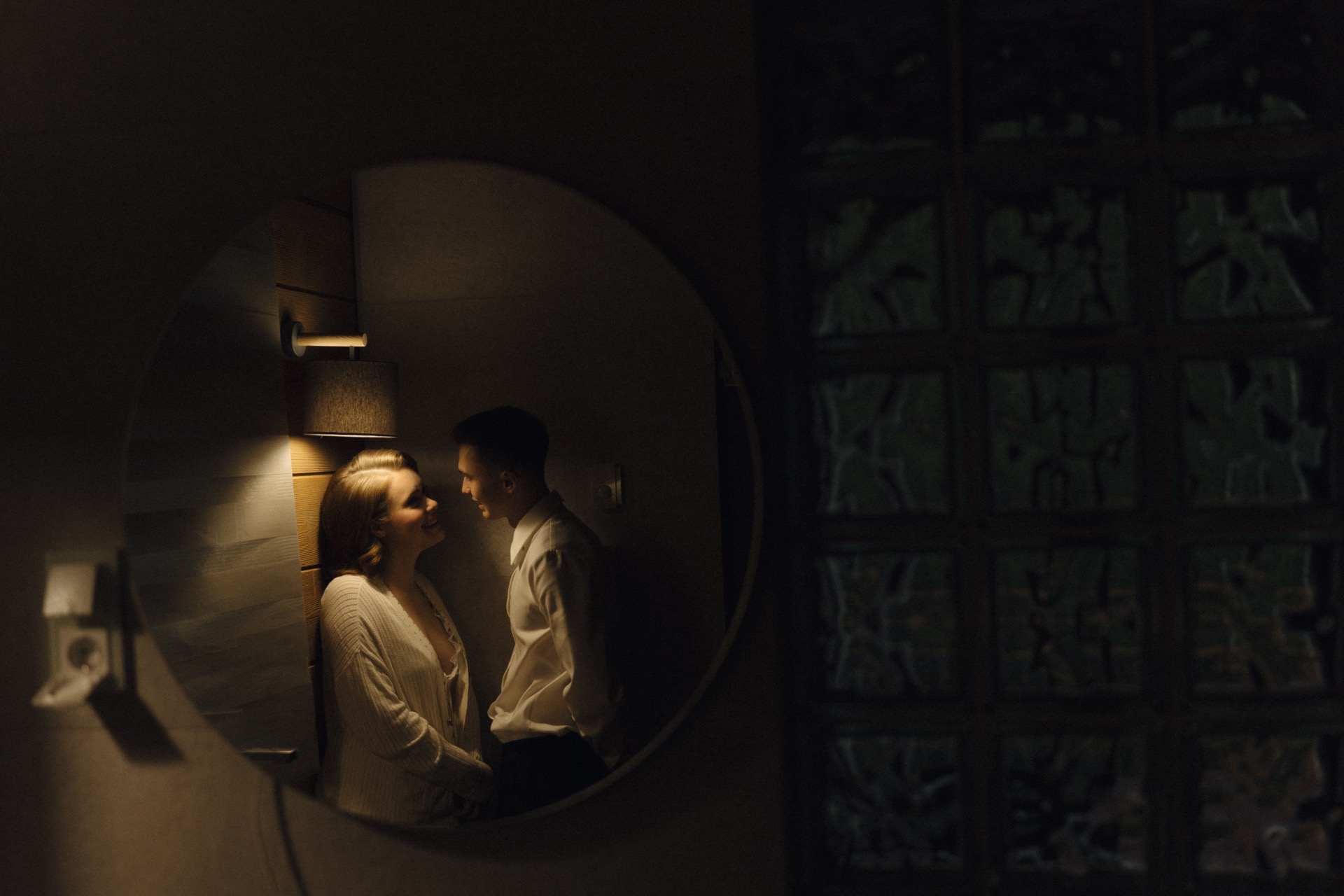 Предложение Глеб сделал на 11 месяцев наших отношений. В тот день мы пошли на вечеринку в Севкабель. Я что-то предчувствовала, но весь вечер не было ни намёка на кольцо. И только около трёх часов ночи, перед тем как ехать домой, мы решили немного прогуляться и оказались на детской площадке. Пока я качалась на качелях, Глеб встал на одно колено и сделал мне предложение. Он очень переживал, это было так искренне. Кстати, кольцо он сделал сам — это был его первый опыт в ювелирном деле.