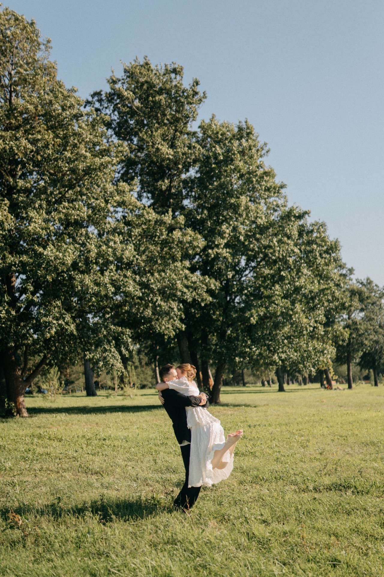 Мероприятие получилось безумно весёлым и трогательным. Самым слёзным моментом, конечно, стала церемония — по фотографиям видно, что плакали почти все. А в остальном, все только улыбались! Мы с Глебом много участвовали во всём, обнимались с гостями, смеялись и, конечно, немного не успевали поесть. Но об этом мы почти не жалеем, разве что совсем чуть-чуть — еда была очень вкусная!)