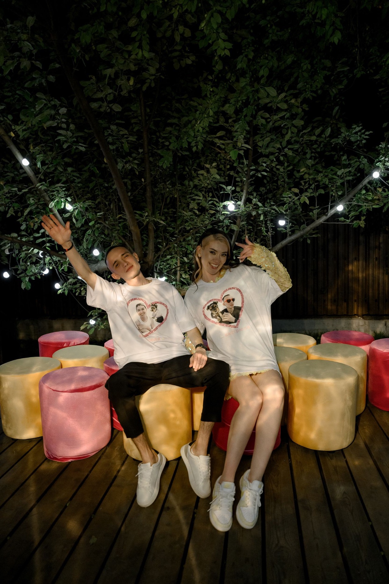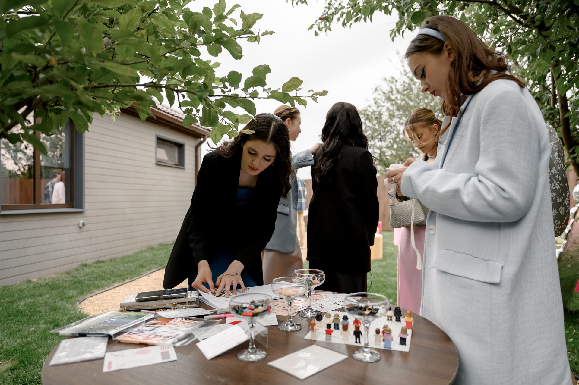Для гостей были подготовлены индивидуальные 3D-стикерпаки на тему нашей свадьбы. Ещё для гостей был устроен лего-бар, они могли забрать свою лего-копию себе или оставить нам на память. Лего было отсылкой к нашему общему увлечению. Мои подружки подготовили танец с песней Mamma Mia и растопили сердца всех. Был ещё один подарок от подруги: она спела песню «Капкан», это было очень трогательно. Всем запомнилась рассадка гостей: мы написали имена на скатерти. Каждая фишка и деталь свадьбы имела свой смысл, отражала нас.
