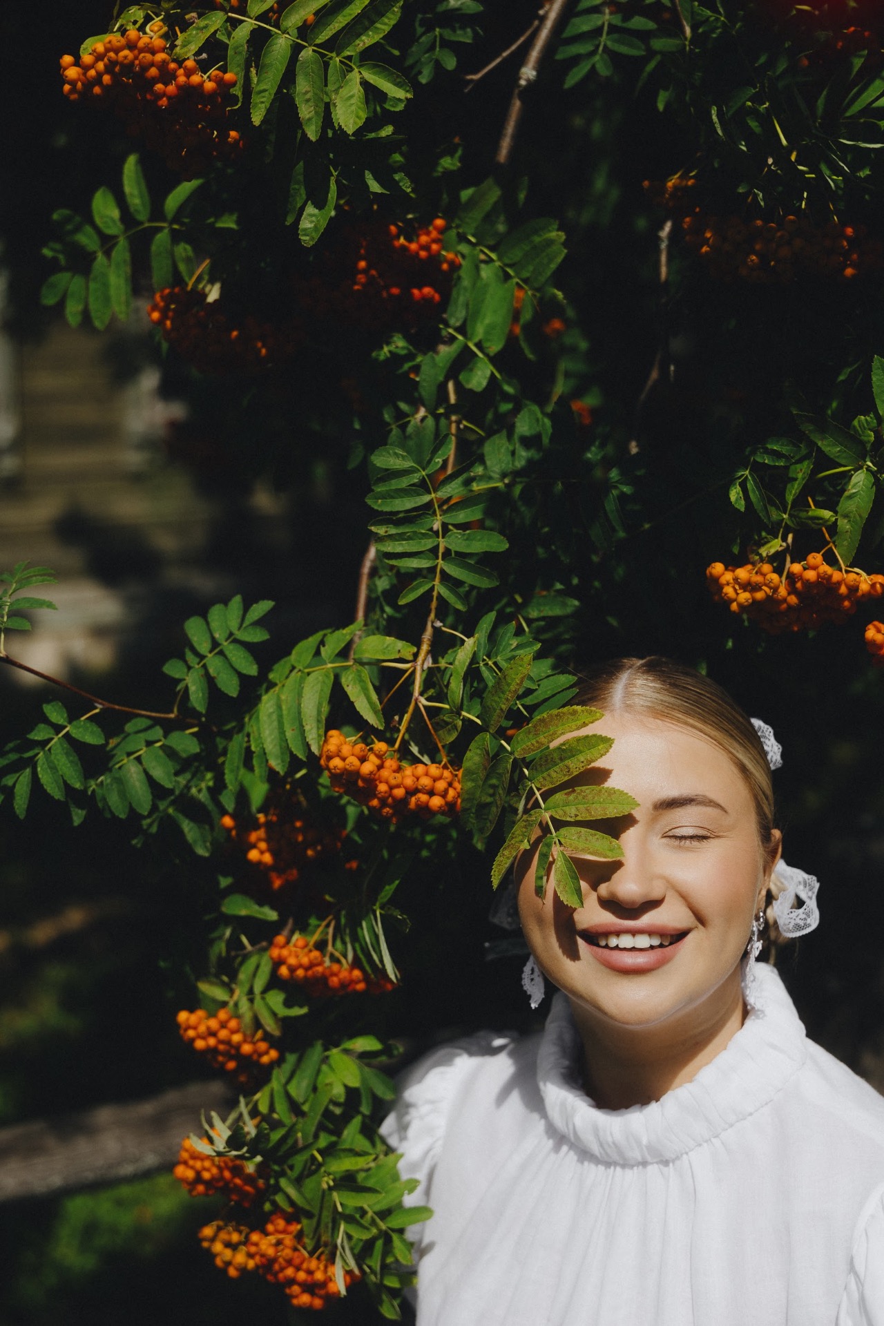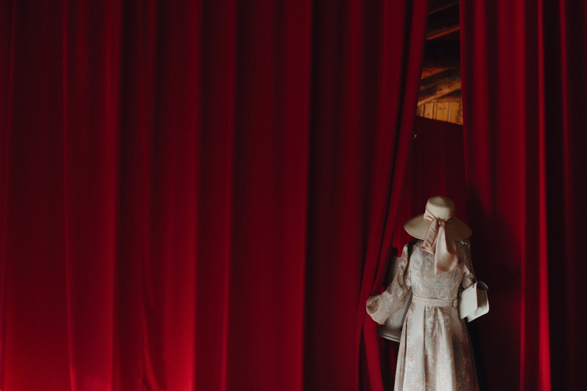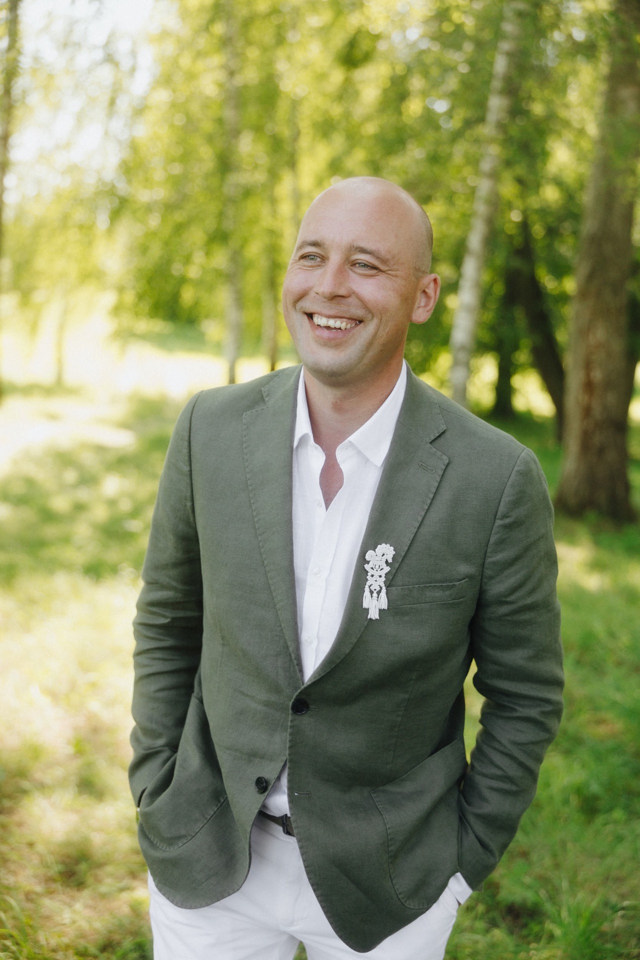 Отдельного внимания заслуживает утренний образ невесты. Стильное платье русского дизайнера Gapanovich Brand из концепт-стора Anti-bride Place стало настоящим украшением Юлии. Образ строился на объёмных формах, лёгкости хлопка и красоте силуэта, подчеркнутой акцентным поясом, который невеста сшила сама.