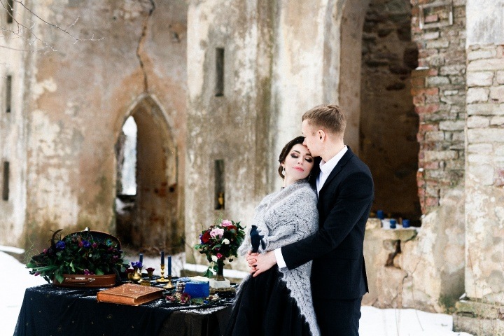 Поэтому мы решили устроить такую съемку на годовщину. Я хотела, чтобы она была не похожа на свадебный день. Это должна была быть зима, снег, черное платье с длинным шлейфом… За несколько месяцев до съемки я посмотрела фильм Тима Бёртона «Дом странных детей Мисс Перегрин» с элегантной Евой Грин в главной роли. Сказки Бёртона — мрачные, романтичные и роскошно красивые — то, что было нужно для вдохновения!