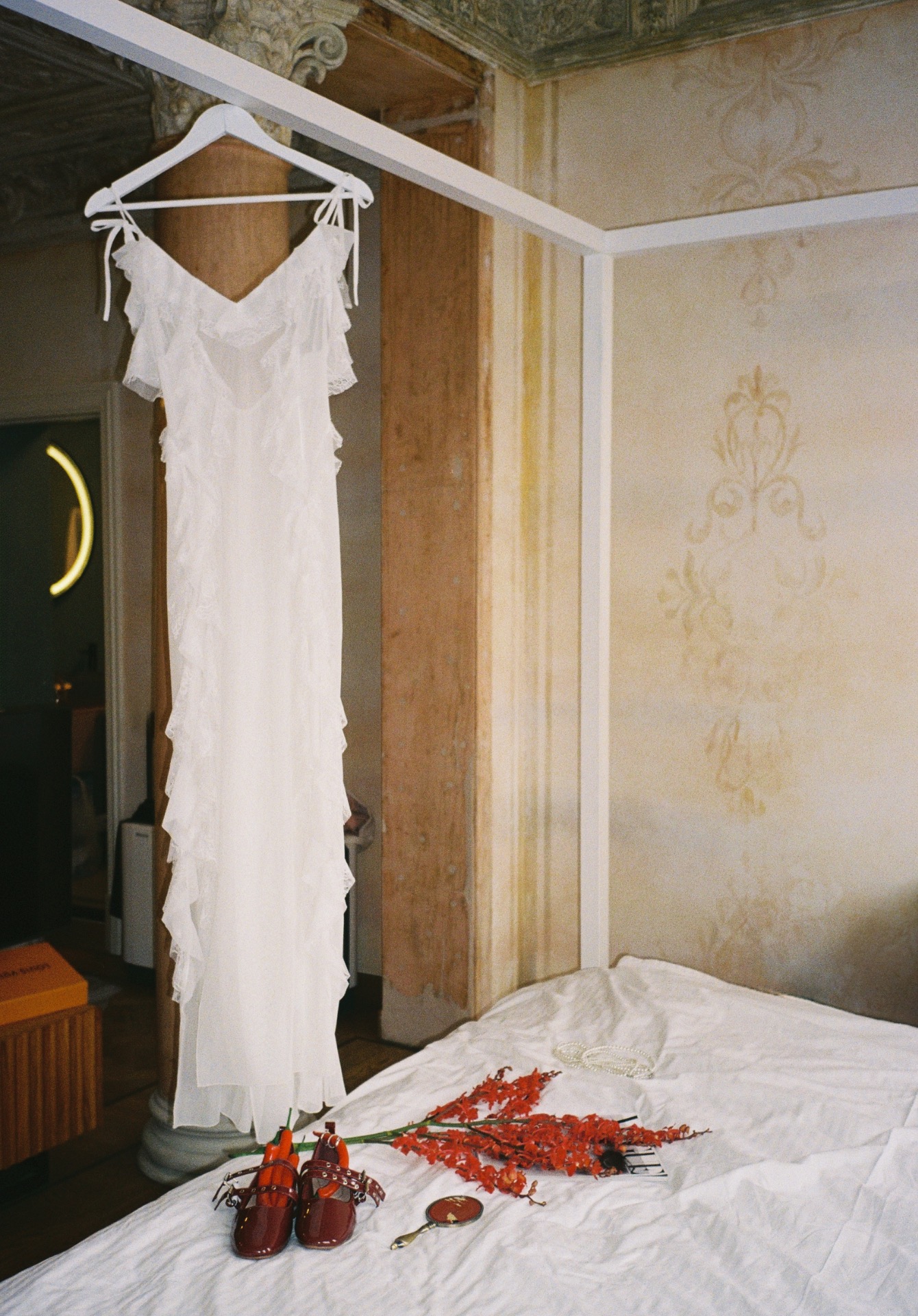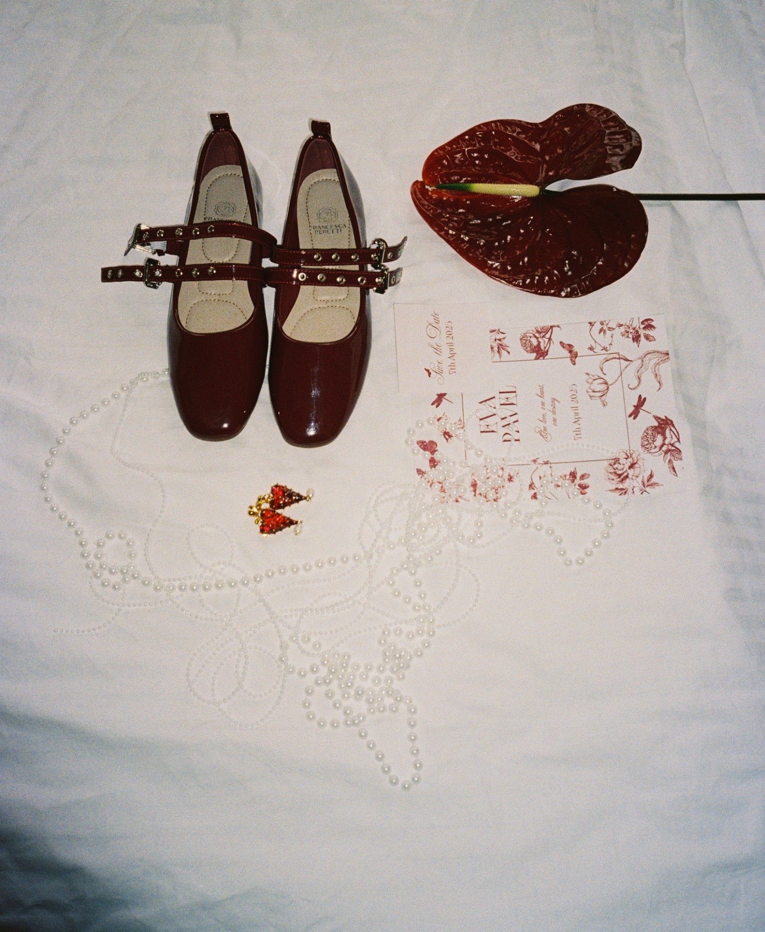 Наступил день X. Утро началось в отеле “Twelve Reasons”. Я проснулась в 7 утра, позавтракала, а к восьми уже пришёл мой стилист. Мы начали макияж и причёску, а Паша в это время всё ещё видел прекрасные сны! Мы почти не волновались — ведь самое волнительное утро у нас уже было в день росписи. Всё проходило легко, с улыбкой и тёплой свадебной суетой. Позже пришла наша команда, они помогли одеться, собрать вещи и подготовить всё для съёмки.