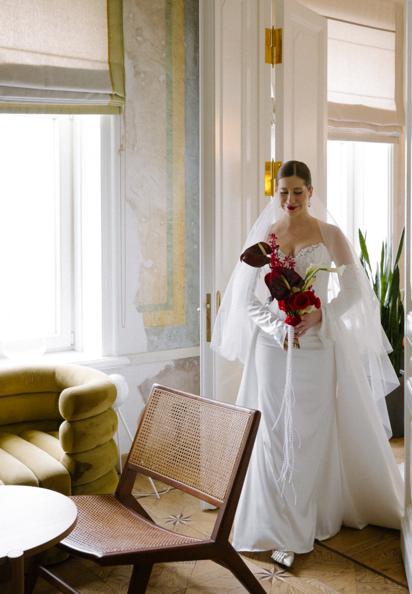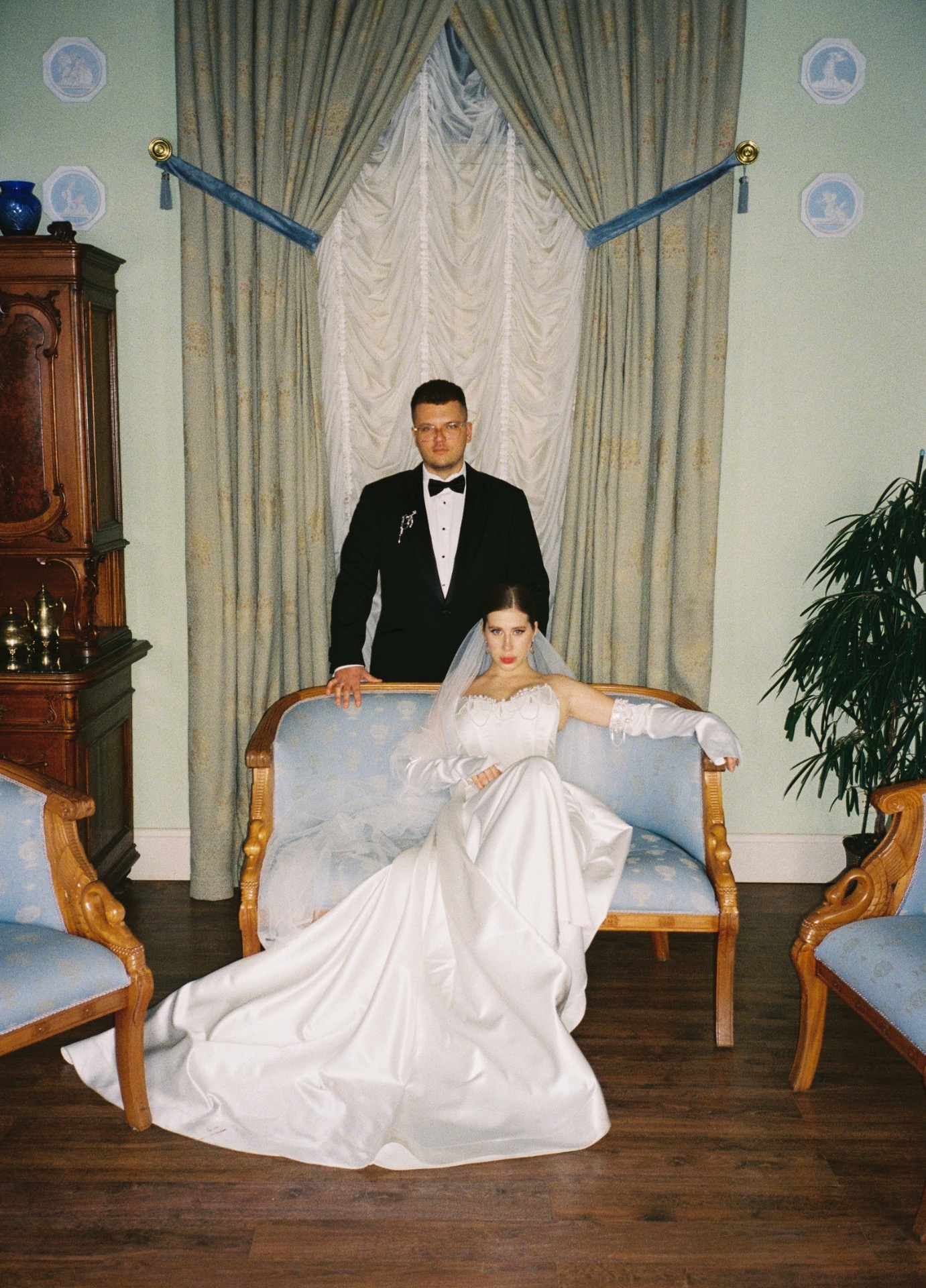 В первом салоне — Кураж, я подобрала образ на «утро невесты», а во втором нашла своё главное платье для торжества. Корсет, расшитый жемчугом, перчатки и атласный шлейф идеально вписались в концепцию и стилистику нашей свадьбы. Мне хотелось, чтобы мой образ отражал мою натуру: элегантность, сдержанность и утончённый вкус. Я дополнила его винтажными серёжками из перламутра — моей особенной семейной реликвией, которую передала мне по наследству бабушка.