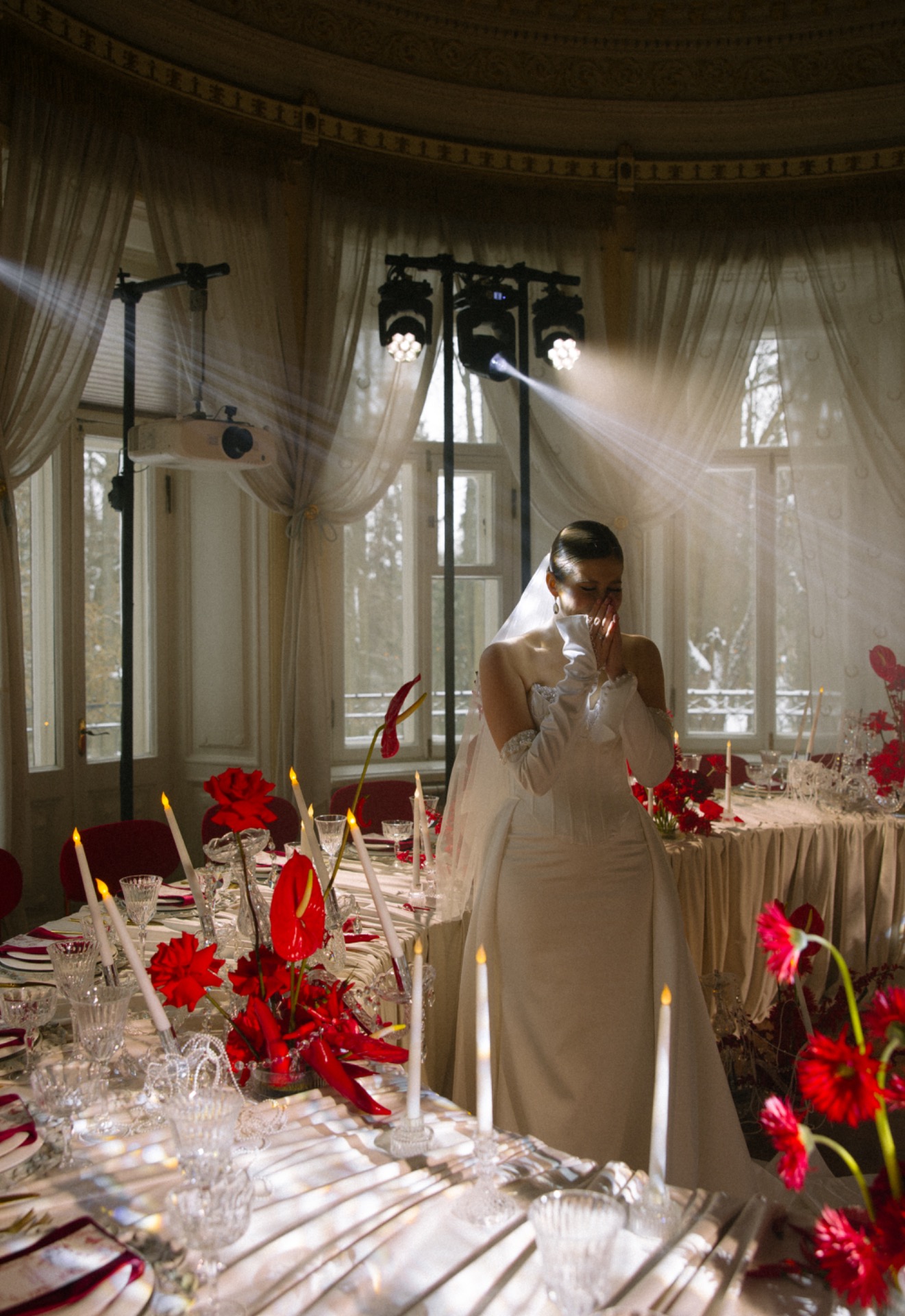 Мы мечтали о камерной свадьбе в усадьбе, чтобы погрузиться в атмосферу свечей, винтажа, жемчуга — того самого уютного вечера, как в старом фильме, где за длинным столом собираются самые родные и важные люди. Именно это настроение и стало основой всей концепции.