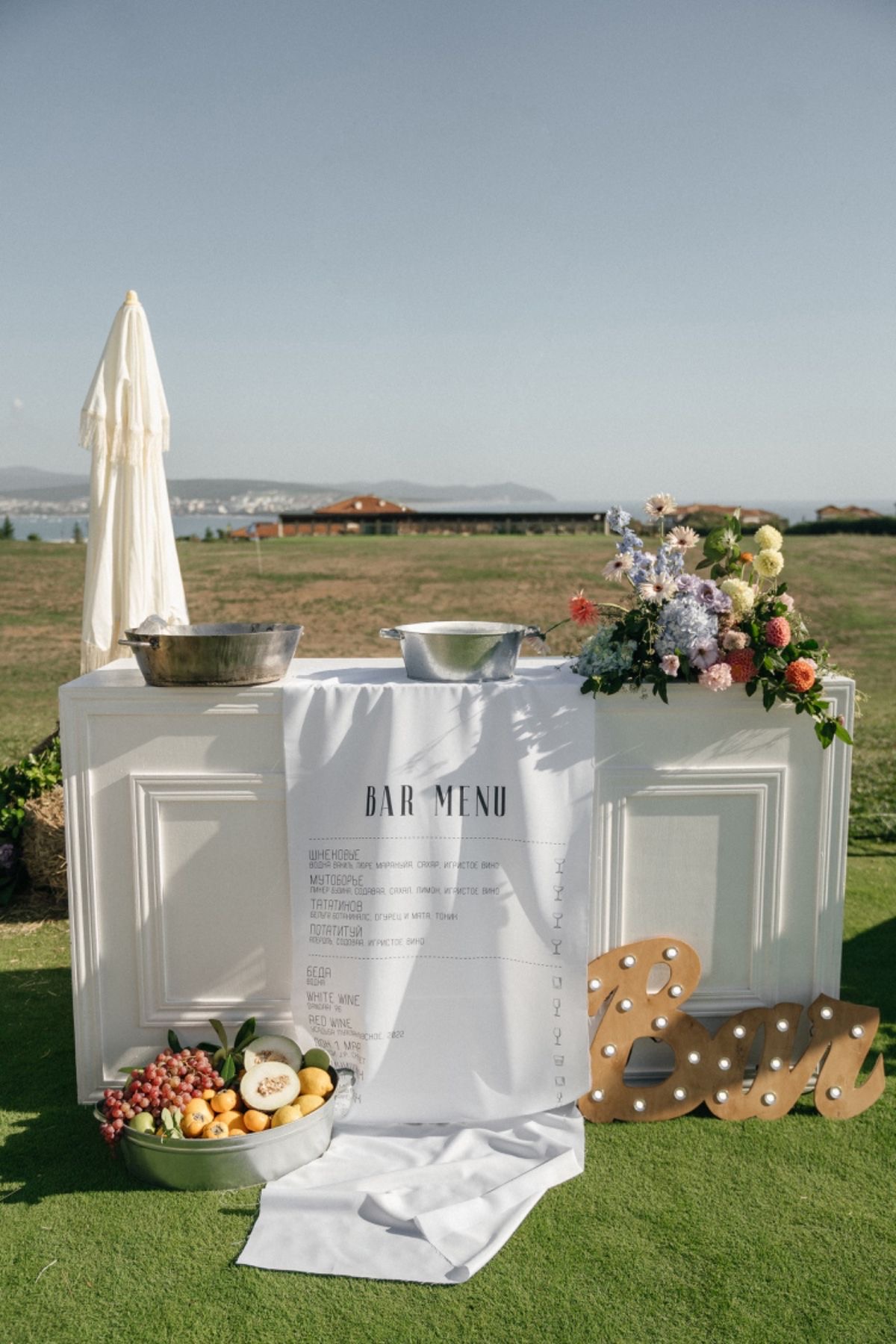 Такая зона не должна располагаться рядом со столами с едой. Лучше разместить её рядом с зоной отдыха или зоной пожеланий, чтобы гости, выйдя из зала проветриться, могли угоститься.