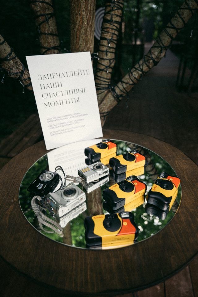 Разнообразить такую зону можно дополнительным декором, живой музыкой и комплиментами для гостей. Если программа вечера планируется насыщенная, в зоне встречи можно разместить программки или раздать гостям полароидные камеры.