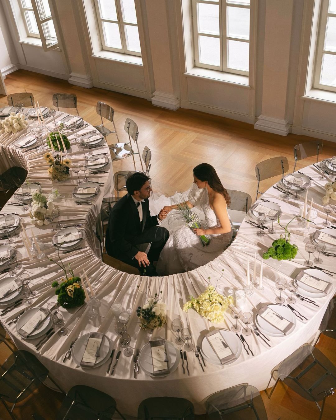 Чтобы оформление этой зоны сохранило своё настроение до начала торжества, лучше разместить её отдельно от зоны фуршета. Это позволит избежать лишнего движения, случайных предметов на стульях и сохранит декор в идеальном состоянии, а фотограф сможет спокойно снять оформление до прихода гостей.