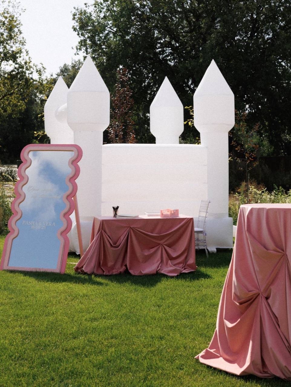 Зона, где гости будут фотографироваться в ожидании молодожёнов или во время банкета, должна быть оформлена особенным образом. Продумайте фон: это может быть как красивая природная локация, если свадьба проходит на открытом воздухе, так и специально подготовленный фон в стилистике свадьбы.