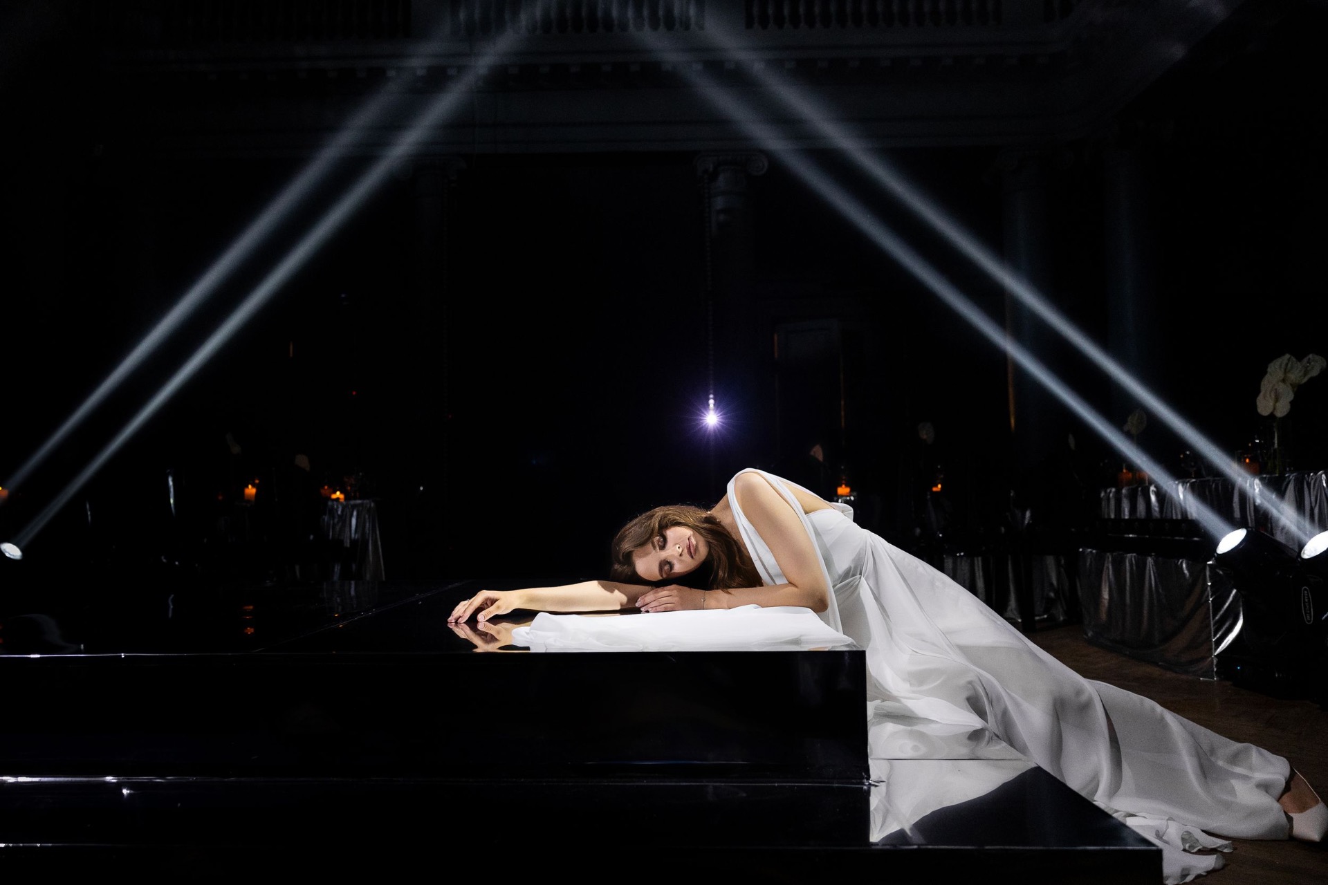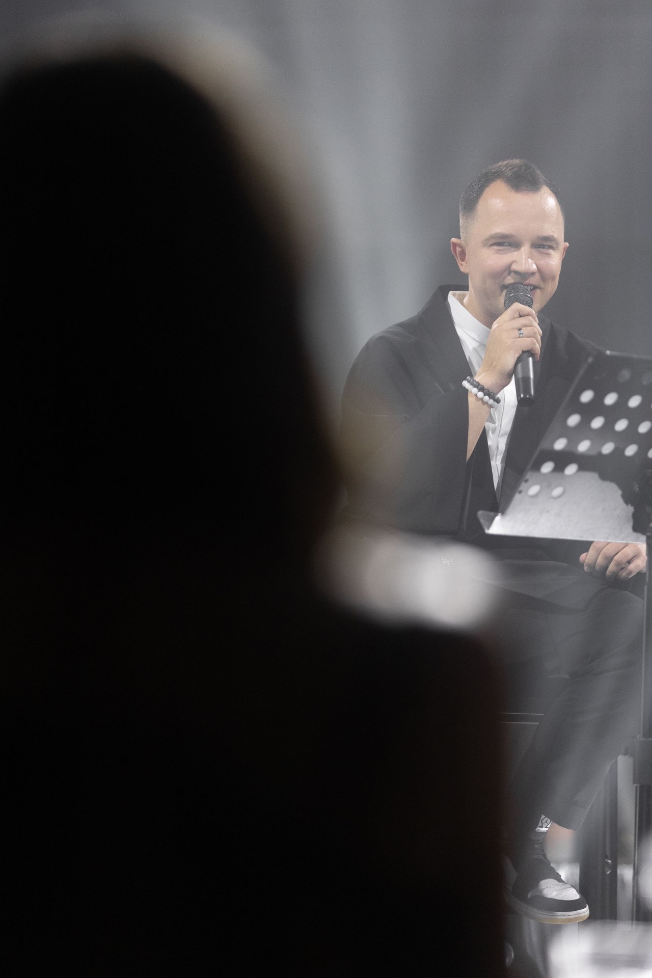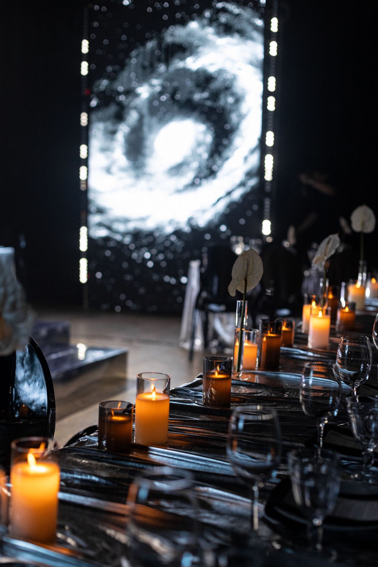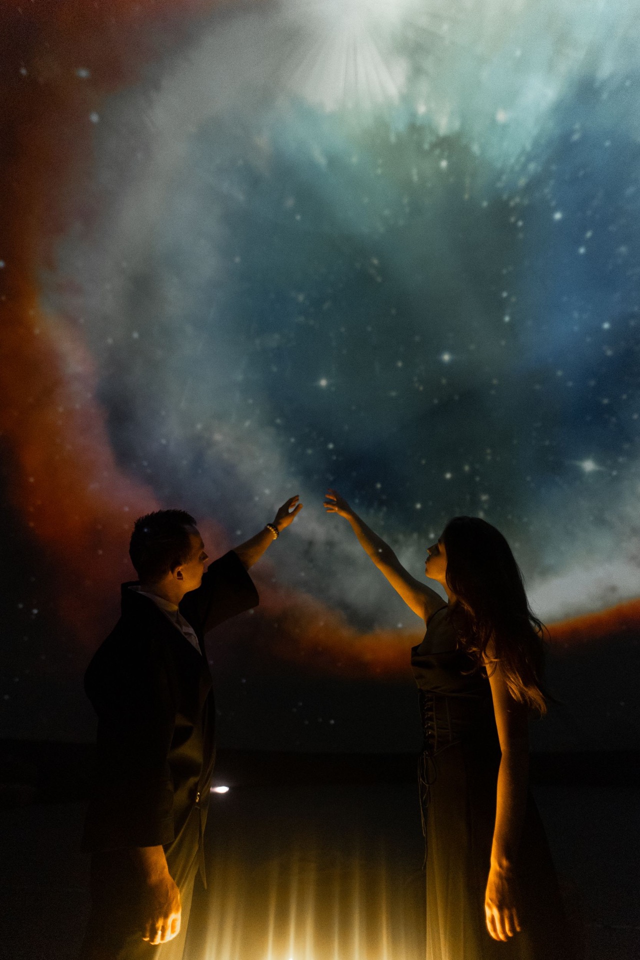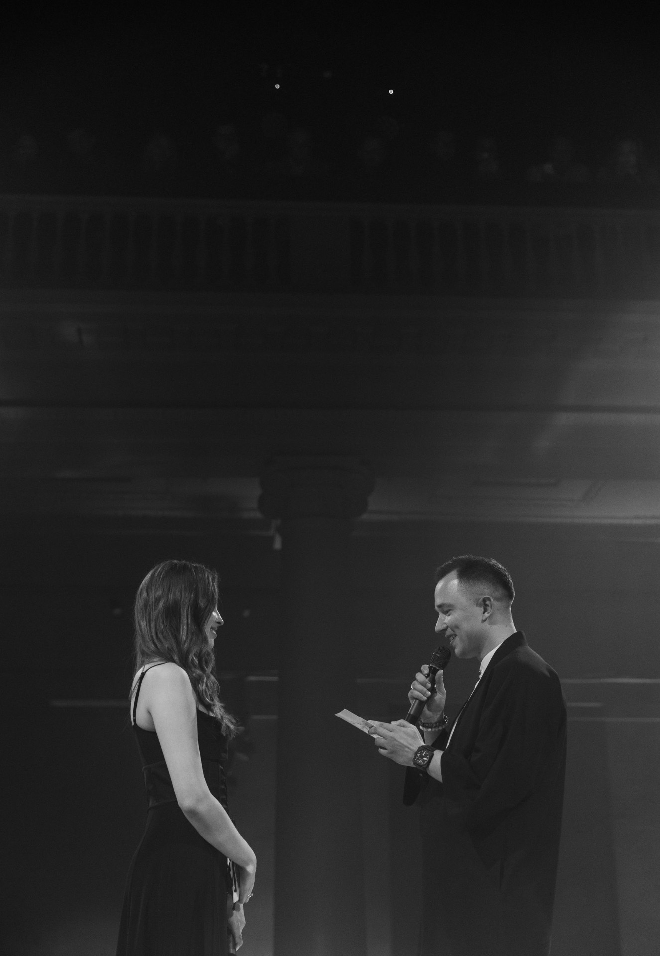 На экранах мелькало интро, которое мы заранее сняли в Планетарии, до нас там ещё никто не проводил подобные съёмки. Алёша ждал моего появления на подиуме, словно парящем в воздухе. Первое томное прикосновение, первые слёзы счастья.